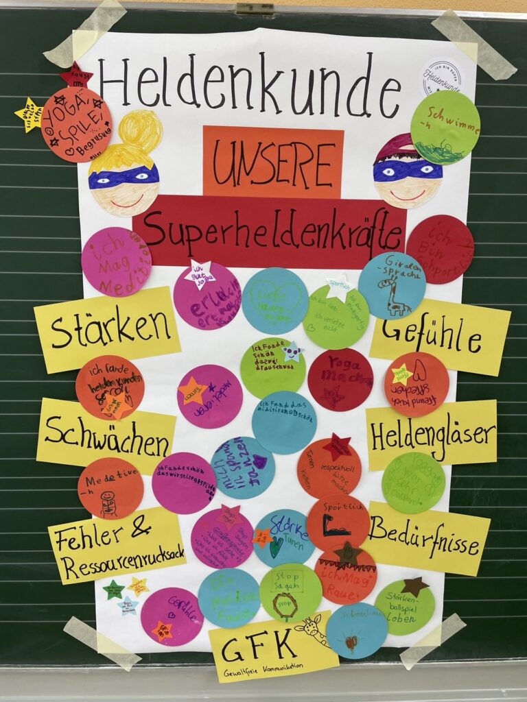 In Heldenkunde entdecken die Kinder ihre Stärken, füllen Heldengläser und lernen, ihre Schwächen und ihre Einzigartigkeit anzunehmen.